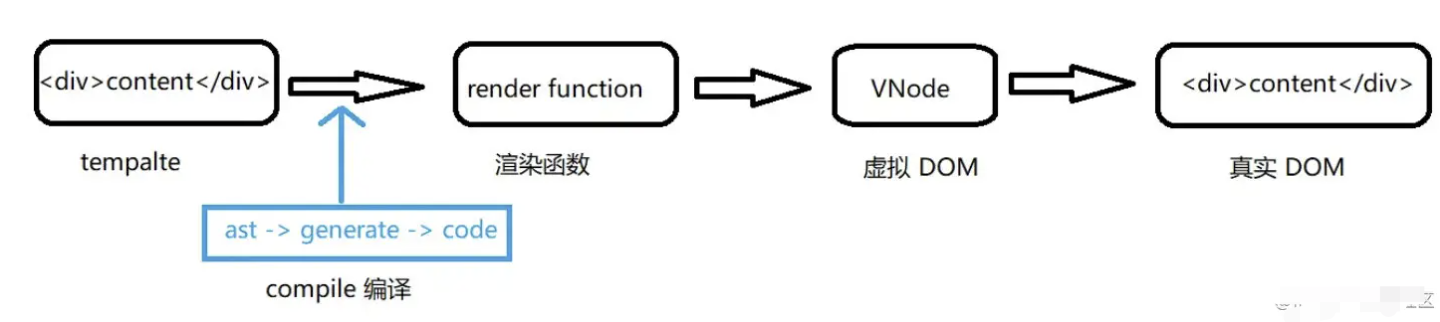 new Vue()首先执行初始化,对data执行响应化处理,这个过程发生Observe中- 同时对模板执行编译,找到其中动态绑定的数据,从