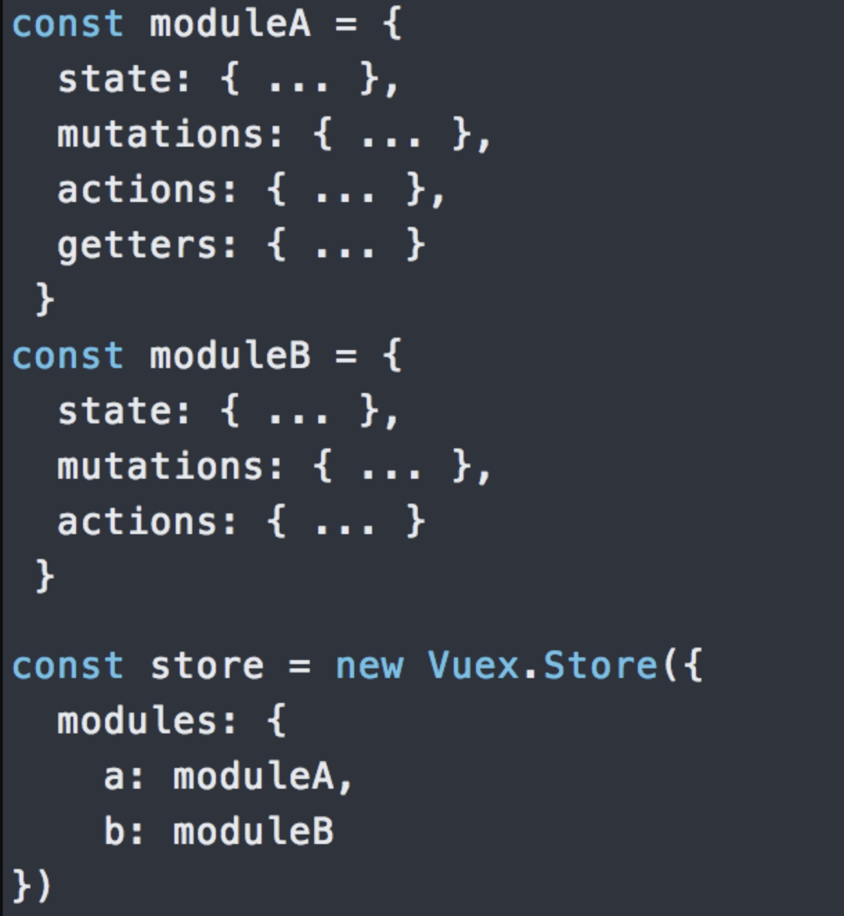 modules:项目特别复杂的时候,可以让每一个模块拥有自己的state、mutation、action、getters,使得结构非常清晰,方便管理