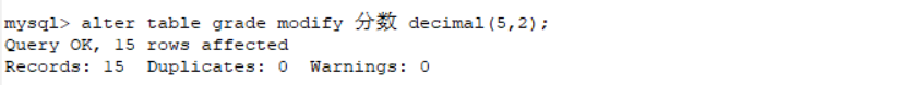 alter table grade modify 分数 decimal(5,2);