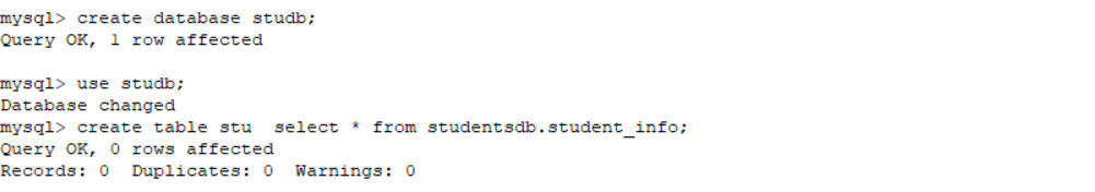 create table stu select * from studentsdb.student_info;