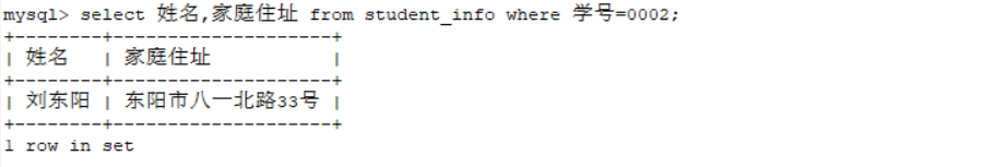 select 姓名,家庭住址 from student_info where 学号=0002;