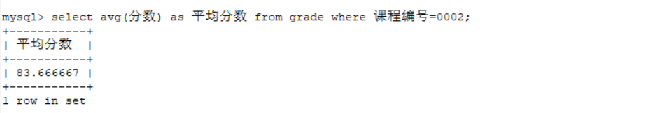 select avg(分数) as 平均分数 from grade where 课程编号=0002;