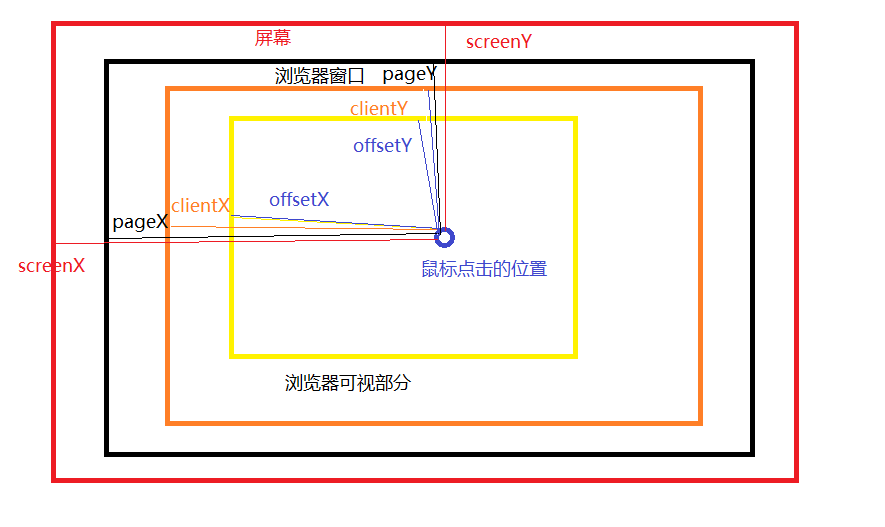 offsetY 得到鼠标在偏移元素内容的y坐标 (当前添加事件的元素里面的坐标 不包含border)