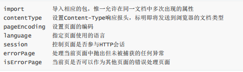 - page指令用于导包和设置一些页面属性,常用属性如下: