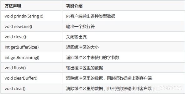 - out内置对象是一个缓冲的输出流,用来给客户端输出信息。