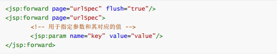 - forward动作用于在JSP中实现转发,将请求转发到另一个指定的JSP程序或者Servlet中处理。