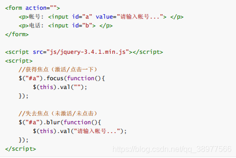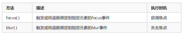 当元素获得焦点时,会触发focus事件,失去焦点时,会触发blur事件,详见下表: