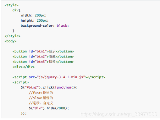 - toggle( speed )等价于show+hide : 显示的隐藏,隐藏的显示