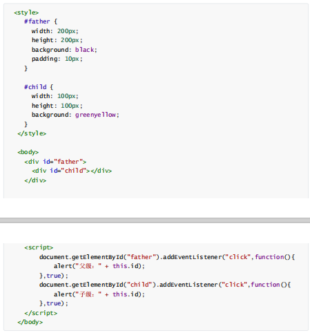 先父,后子。事件触发顺序变更为*自外向内*,这就是事件捕获;