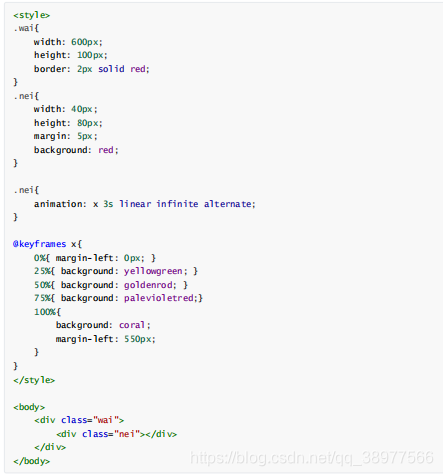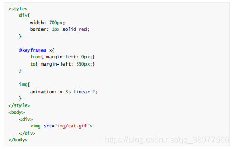 关键帧:@keyframes 动画帧 { from{} to{} } 或者{ 0%{} 20%{}... }