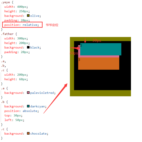 - 如果父级没定位,找爷爷级,爷爷定位了,以爷爷为参照物。