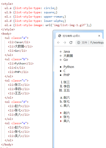 - lower-alpha:小写英文字母The marker is lower-alpha (a, b, c, d, e,等。)
