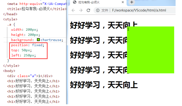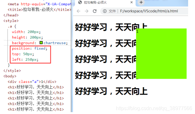 将元素的内容固定在页面的某个位置,当用户向下滚动页面时元素框并不随着移动