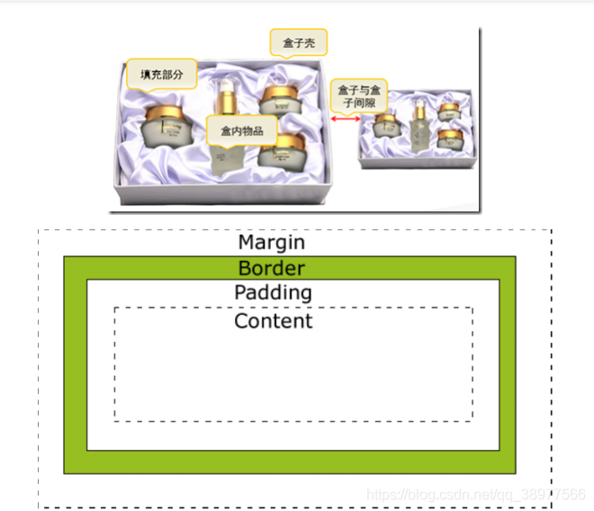CSS盒子模型本质上是一个盒子,封装周围的HTML元素,它包括:边距,边框,填充,和实际内容。