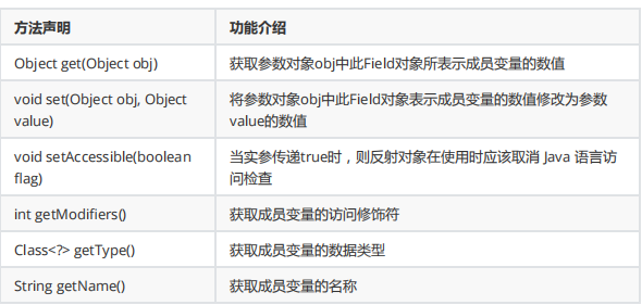 - java.lang.reflflect.Field类主要用于描述获取到的单个成员变量信息。