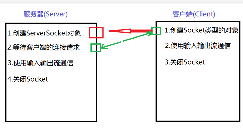 - 客户端 Socket 与服务器端 Socket 对应, 都包含输入和输出流。