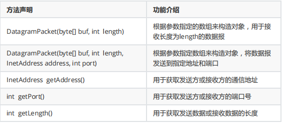 java.net.DatagramPacket类主要用于描述数据报,数据报用来实现无连接包裹投递服务。