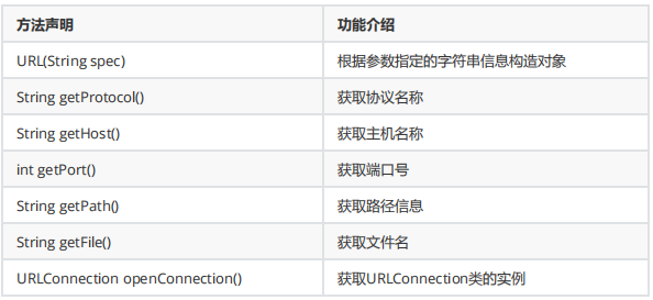 - java.net.URL(Uniform Resource Identififier)类主要用于表示统一的资源定位器,也就是指向万