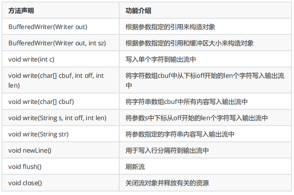 java.io.BufffferedWriter类主要用于写入单个字符、字符数组以及字符串到输出流中。