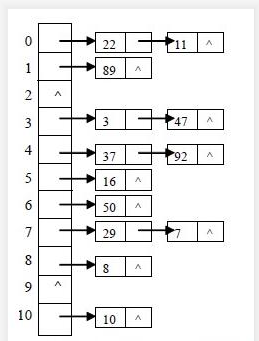 哈希表:(元素为单项链表的数组)