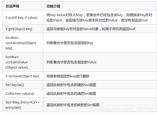 - 该集合中key是不允许重复的,而且一个key只能对应一个value。