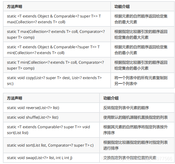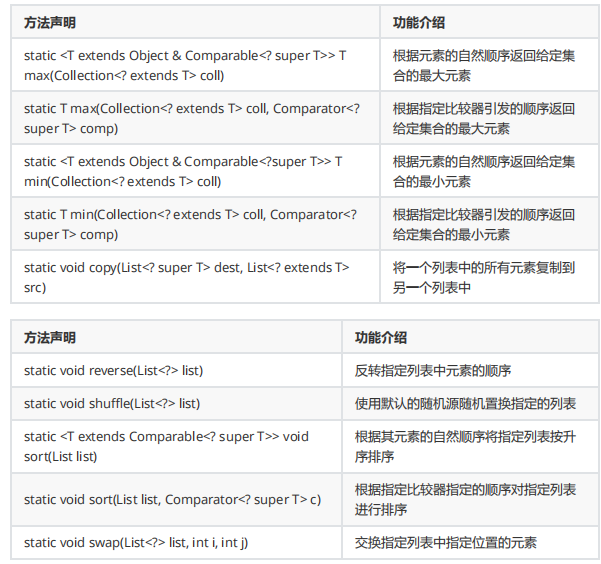 java.util.Collections类主要提供了对集合操作或者返回集合的静态方法