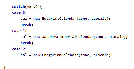 2.该类是个抽象类,因此不能实例化对象,其具体子类针对不同国家的日历系统,其中应用最广泛的