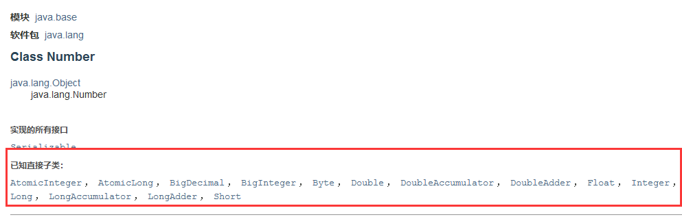 java.lang.Number类是个抽象类,是上述类的父类来描述所有类共有的成员。