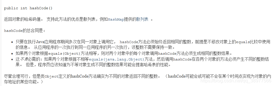 为了使hashCode方法的结果和equals方法的结果保持一致,从而满足官方的常规协定,需要重写该方法。