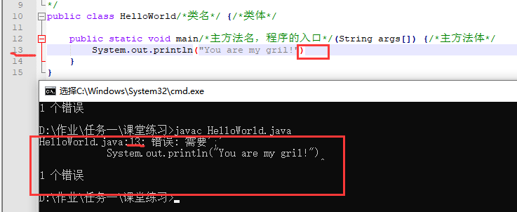 错误:需要“;” --->该行缺少“;”(注意中英文“;”)