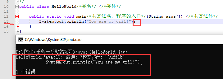 错误:非法字符: '\uff1b' --->中英文字符问题,出现了中文符号