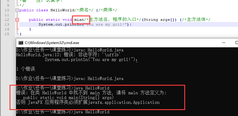 在类PrintTest中找不到main方法,请将main方法定义为 ----->main写成了mian