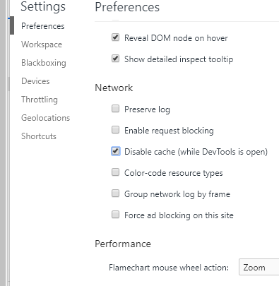 chorm浏览器更新 F12->F1->勾选Disabled cache(while DevTools is open)