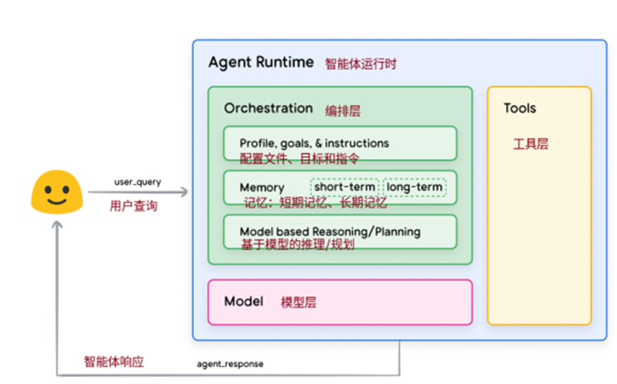 智能体可以被定义为一种应用程序,它通过观察环境并利用其可用的工具对环境采取行动以尝试实现预设目标。智能体具有自主性,可以在没有人类干预的情况 下独立行动,尤其是当它们被赋予了明确的目标或任务时。智能体的构成如下: