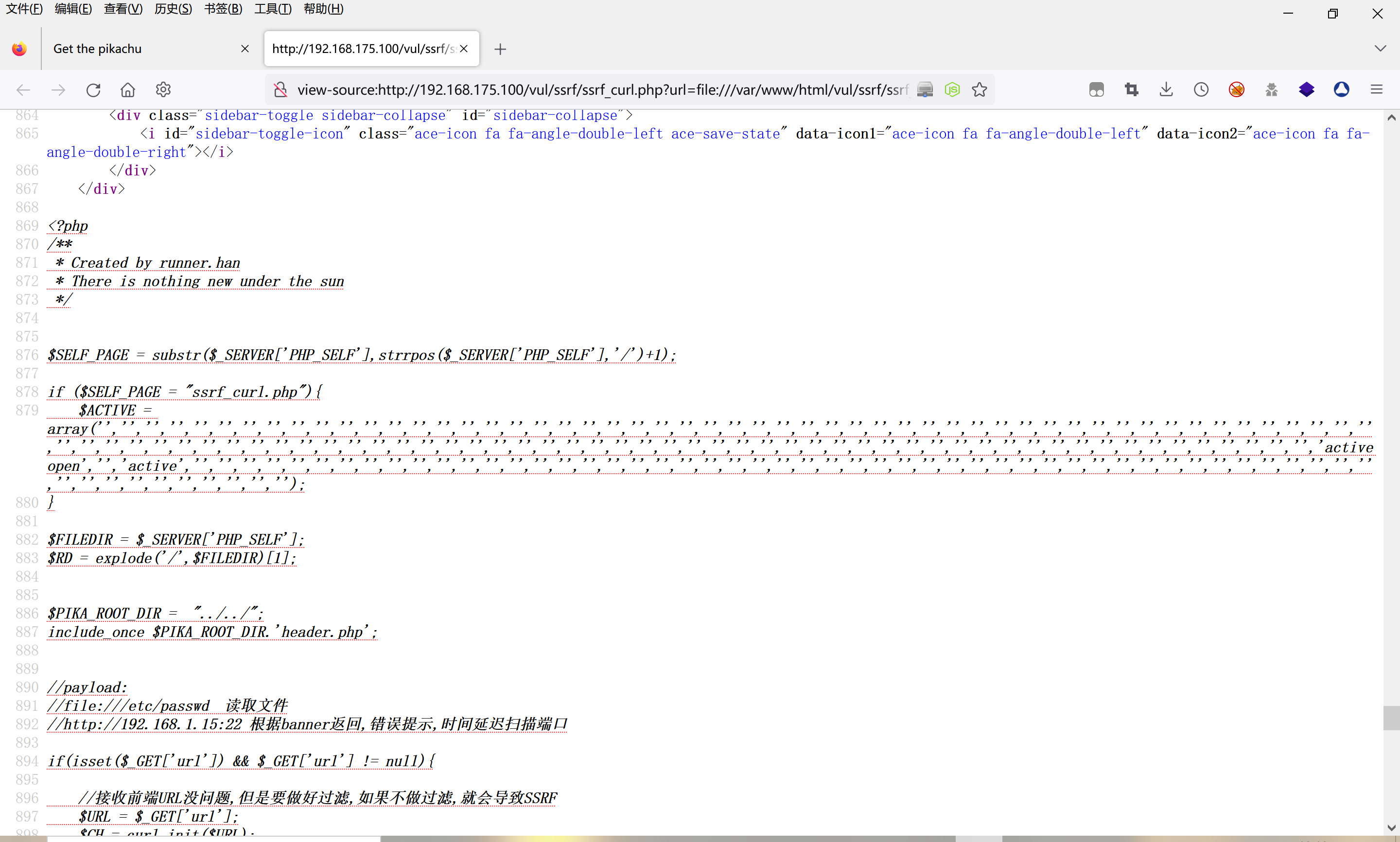 SSRF(Server-Side Request Forgery,服务器端请求伪造):可以通过伪造服务器端发起的请求,从而获取客户端所不能得到的数据。一般情况下,SSRF攻击的目标是从外网无法访问的内部系统。(正是因为它是由服务端发起的,所以它能够请求到与它相连而与外网隔离的内部系统)
