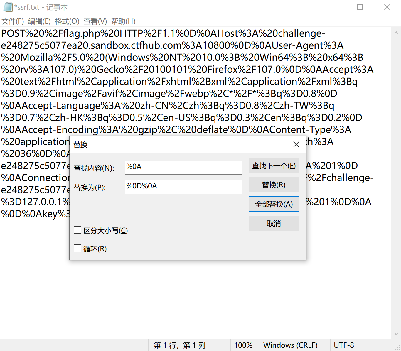 gopher协议数据流中,url编码使用%0D%0A替换字符串中的回车换行