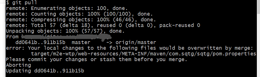 Git冲突:commit your changes or stash them before you can merge. 解决办法
