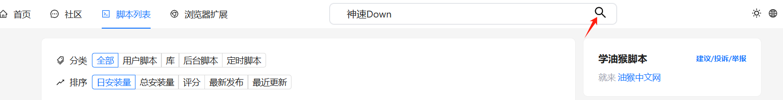 在里面的搜索栏里面搜索“神速Down”并点击搜索按钮