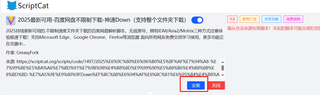 如果你已经安装了其他脚本管理器,例如:Tampermonkey,你也可以选择不安装脚本猫。