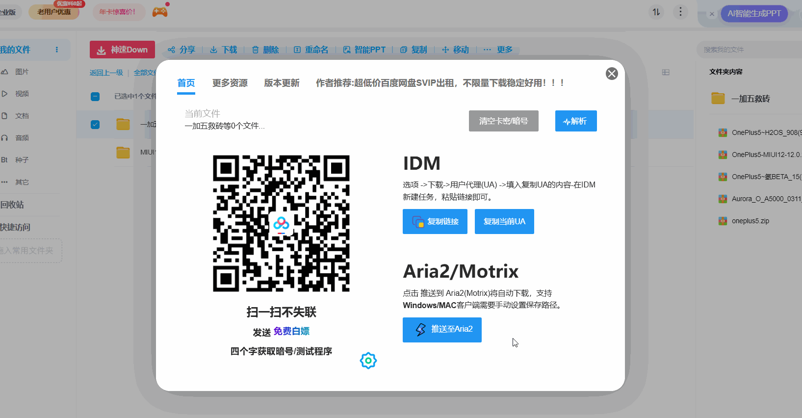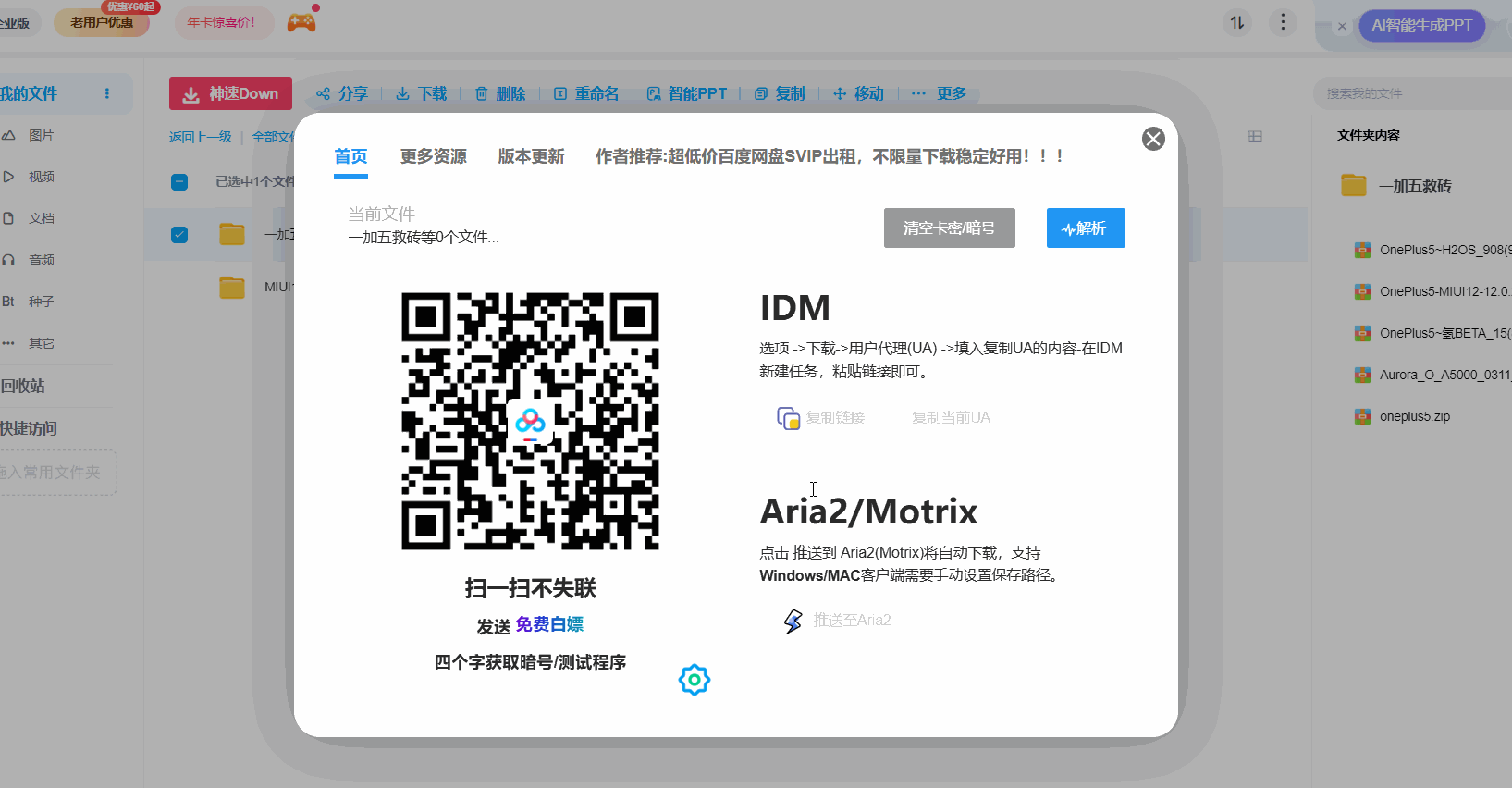 三、安装下载软件(IDM/Aria2/Motrix,三选一,不需要全装)下载软件的安装就不再赘述了,软件使用之前需要配置一下,具体请按照下面的图进行(没有配置是下载不了百度网盘资源的,切记!)。再次提醒,下面三个下载软件,只需要选择其中一个,不要全装,不要全装,不要全装!IDM配置步骤:点击复制UA按钮 -> 在IDM选项 -> 下载 -> 手动添加任务时使用的用户代理(UA)-> 填入复制的UA。在 IDM ->任务->从剪切板中添加批量下载即可下载。