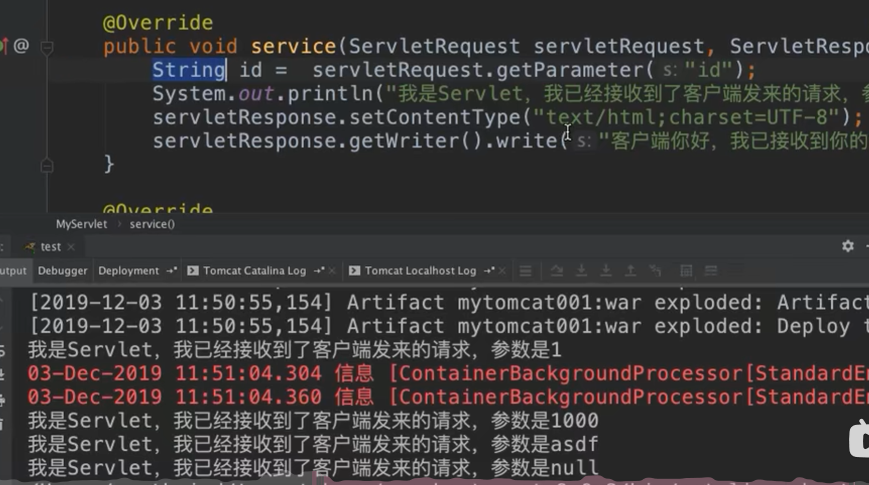 System.out.println("我是servlet,我已经接收到了客户端的请求,参数是"+id);