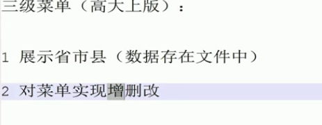 f = open("city.txt","r",encoding="utf-8") china_city = eval(f.read()) f.close() print("操作说明:增加》z,删除》del,进入》直接输入名称,返回上层》b") def quits(): import os print("感谢使用,再见!") os._exit(0) current_layer = china_city #拿出字典 parent_layer = [] #保存所有父级,最后一个元素永远都是父级 while True: for key in current_layer: print(key) choice = input("输入z增加地区>>>").strip() if len(choice) == 0:continue if choice in current_layer: parent_layer.append(current_layer)#在进入下一层之前,把当前层(也就是下一层父级) #下一层loop.当用户选择b的选择,就可以直接取列表的最后一个值出来就ok current_layer = current_layer[choice]#改成了子层 elif choice == "b": if parent_layer: current_layer = parent_layer.pop() elif choice == "q": quits() elif choice == "z": choice_2 = input("请输入地区名称>>>").strip() current_layer.setdefault(choice_2,{}) elif choice == "del": choice_2 = input("请输入删除地区>>>").strip() if choice_2 in current_layer: del current_layer[choice_2] elif choice == "save": current_layer = parent_layer.pop() current_layer = str(current_layer) print(current_layer) f = open("city.txt", "w", encoding="utf-8") f.write(current_layer) print("保存完毕,请继续!") f.close() current_layer = eval(current_layer) else: print("无此项!")