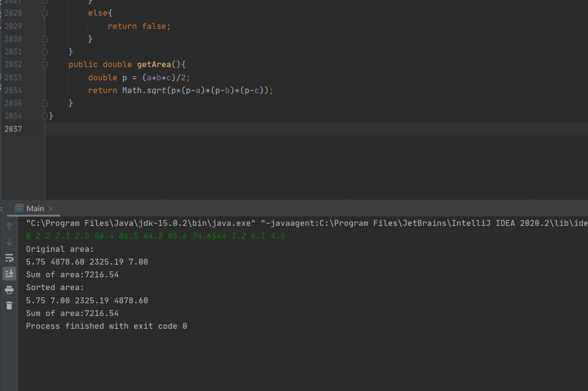 System.out.print("Sum of area:" + df.format(allS2));