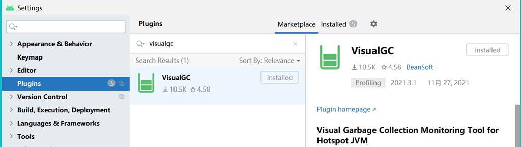 推荐安装方式: File-> Settings-> Plugins 输入 VisualGC 即可下载.