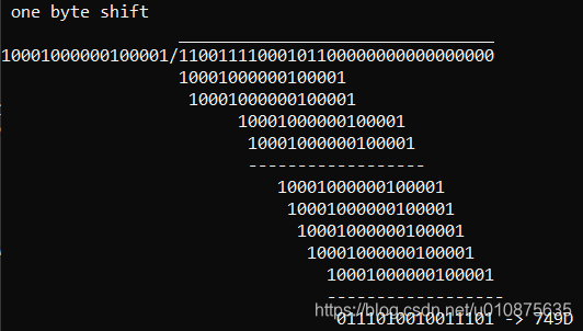 每次取高8bit为索引,获取到低16位的异或值,然后与原值低16位异或即可得到余数(上上张图的褐色部分)。