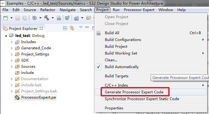 设置完毕后保存,再在Project中选择Generate Processor Expert Code,此时,所有驱动代码生成完毕。