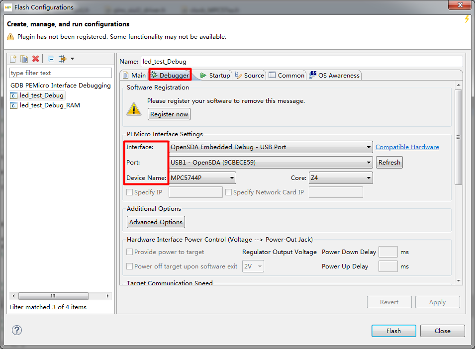 注意选择你的调试器。