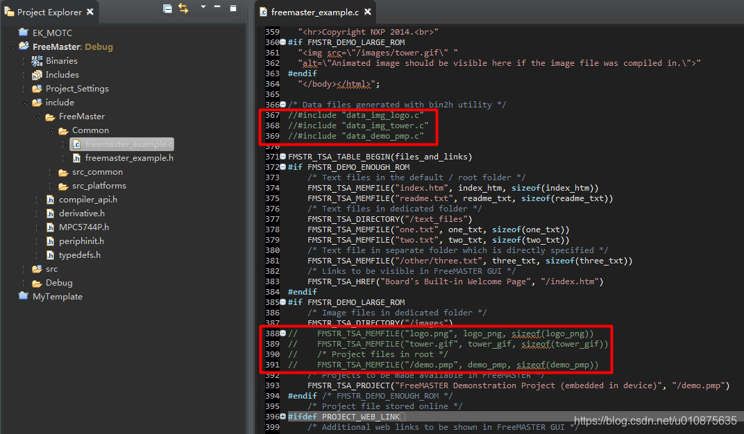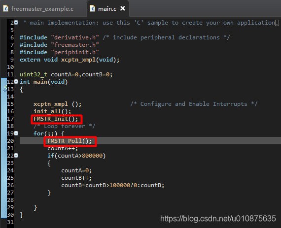 6、注释Common\FreeMaster_example.c中6行数据