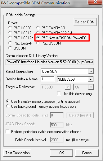 5、BDM选择P&E Nexus/OSBDM PowerPC,其它默认,然后就可以了