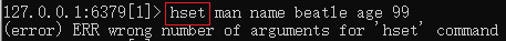 Redis - ERR wrong number of arguments for 'hset' command
